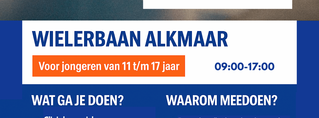 Op zondag 28 september 2025 organiseert RTC Alkmaar samen met Alkmaar Sport de Breedtesport Testdag baanwielrennen. Tijdens deze dag maken jongeren (11 t/m 17 jaar) op een leuke en veilige manier kennis met de baan: